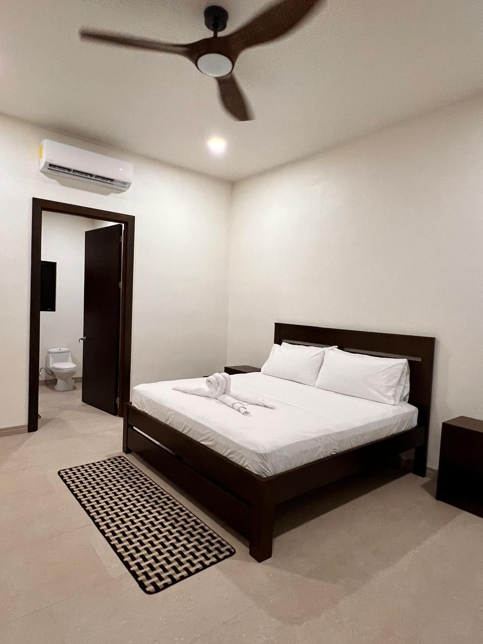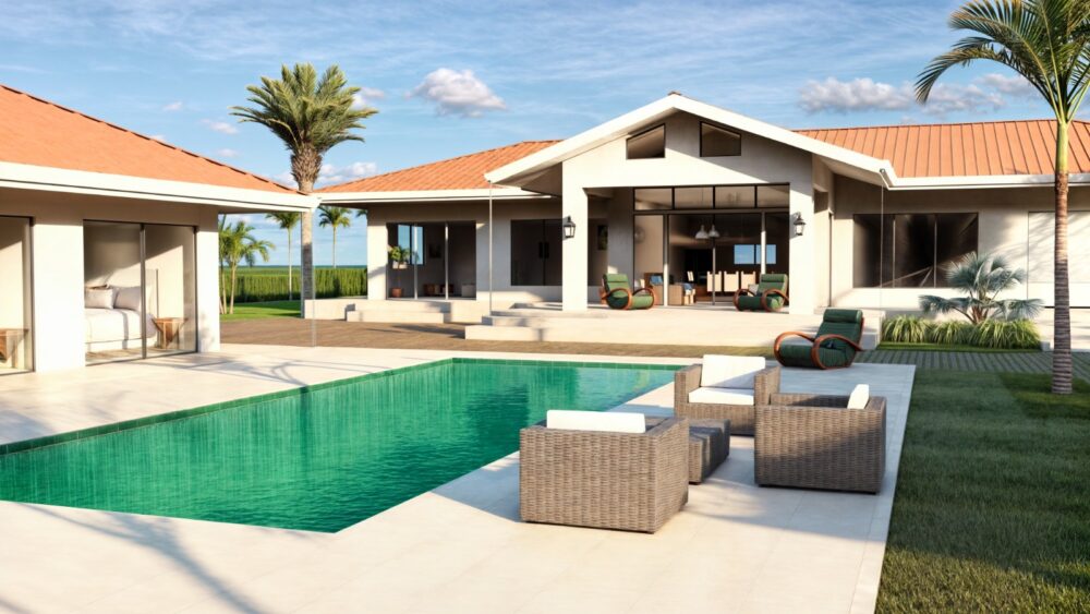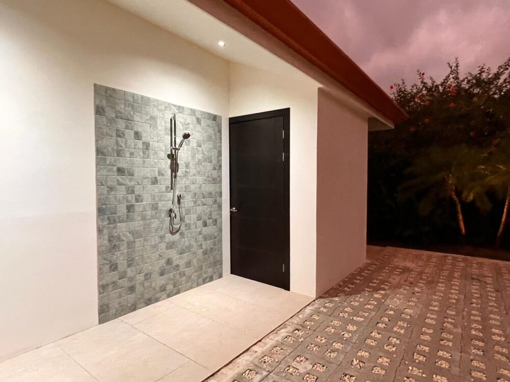 The main house itself boasts three spacious bedrooms, each with its own private full bathroom, blending modern elegance with tropical charm. High-end finishes, contemporary appliances, and expansive windows allow natural light and gentle breezes to flow throughout the home.