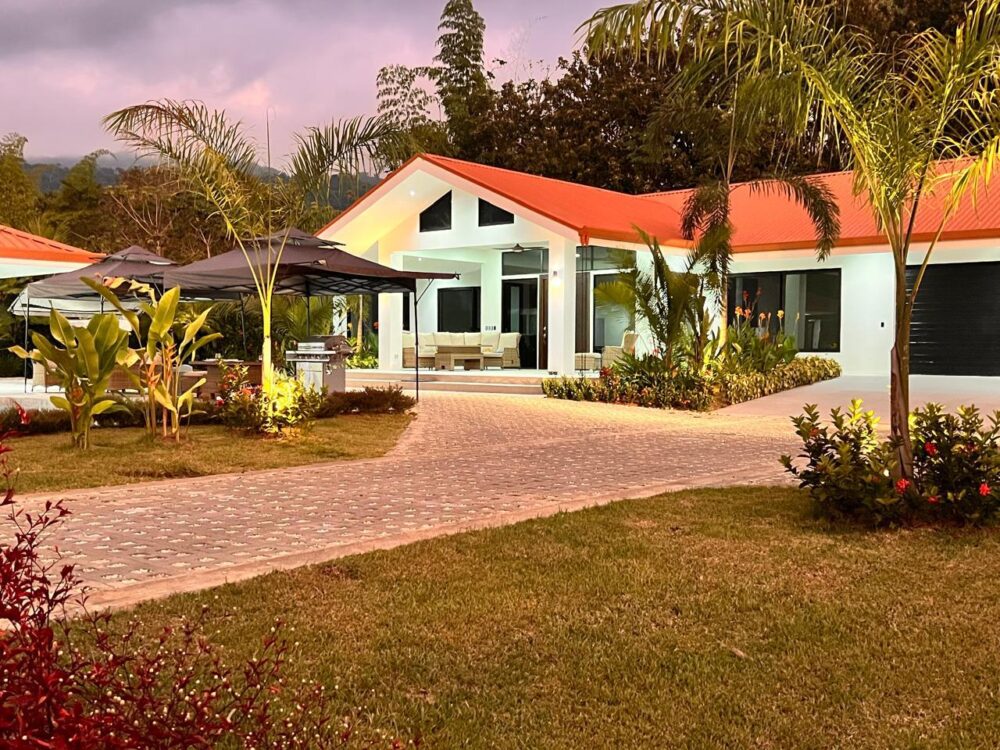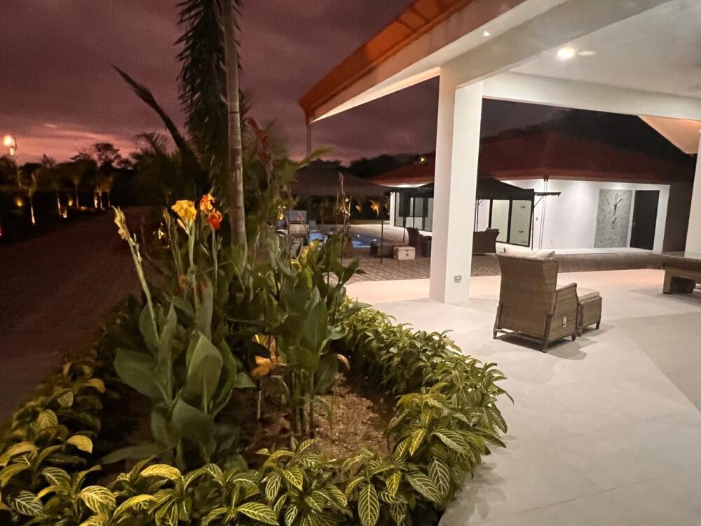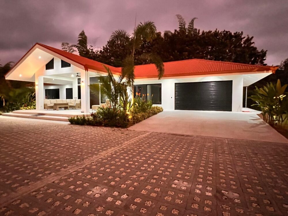 Upon entering the exclusive 10-lot community, the developer’s attention to detail is immediately evident. A beautifully landscaped entrance and paved driveway lead to the home, surrounded by tropical plants and fruit trees. The property offers easy access directly from the coastal highway.